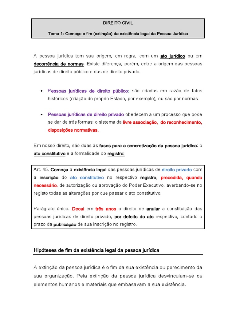 Tema 1 Direito Civil Criacao E Extincao Da Pessoa Juridica