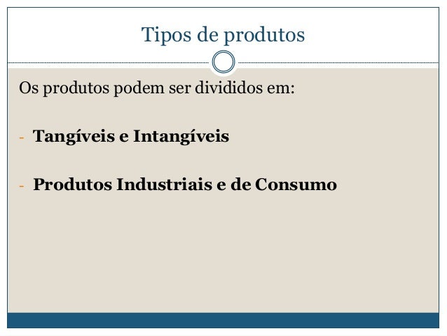 Produto tangível é um conceito que diz respeito as características que o consumidor vê no produto tais como design marca características qualidade e embalagem.