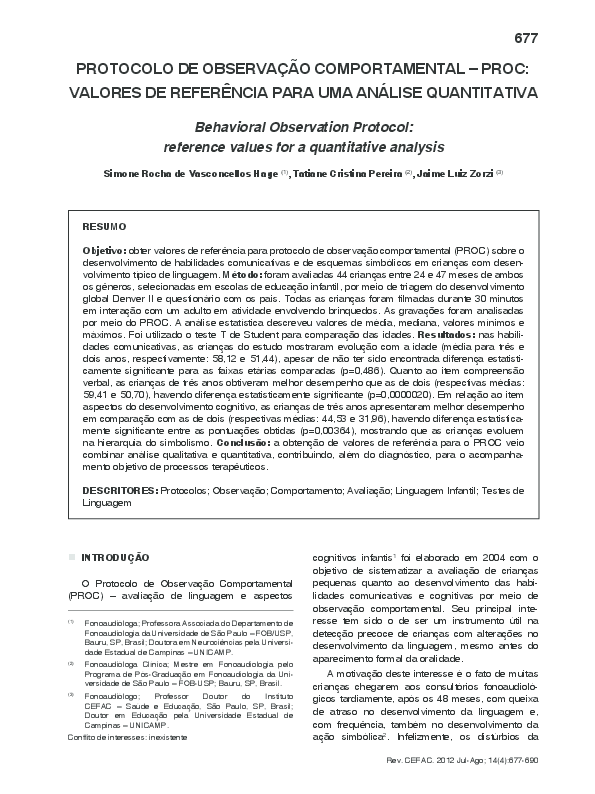 Pdf Protocolo De Observacao Comportamental Proc Valores De