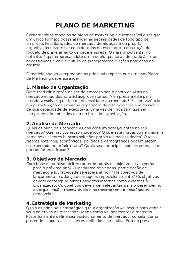Completo com dados Exemplo De Plano De Marketing E Vendas.
