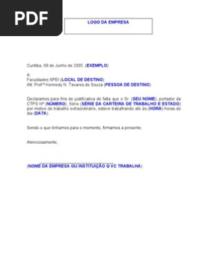 Revisamos sobre Exemplo De Justificativa De Falta Ao Trabalho.