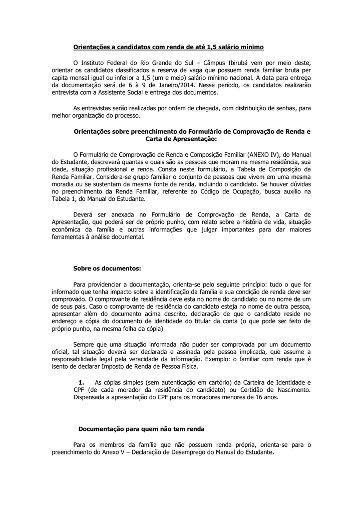 Documentacao Renda 01 Candidato E Familia Pdf Manualzz