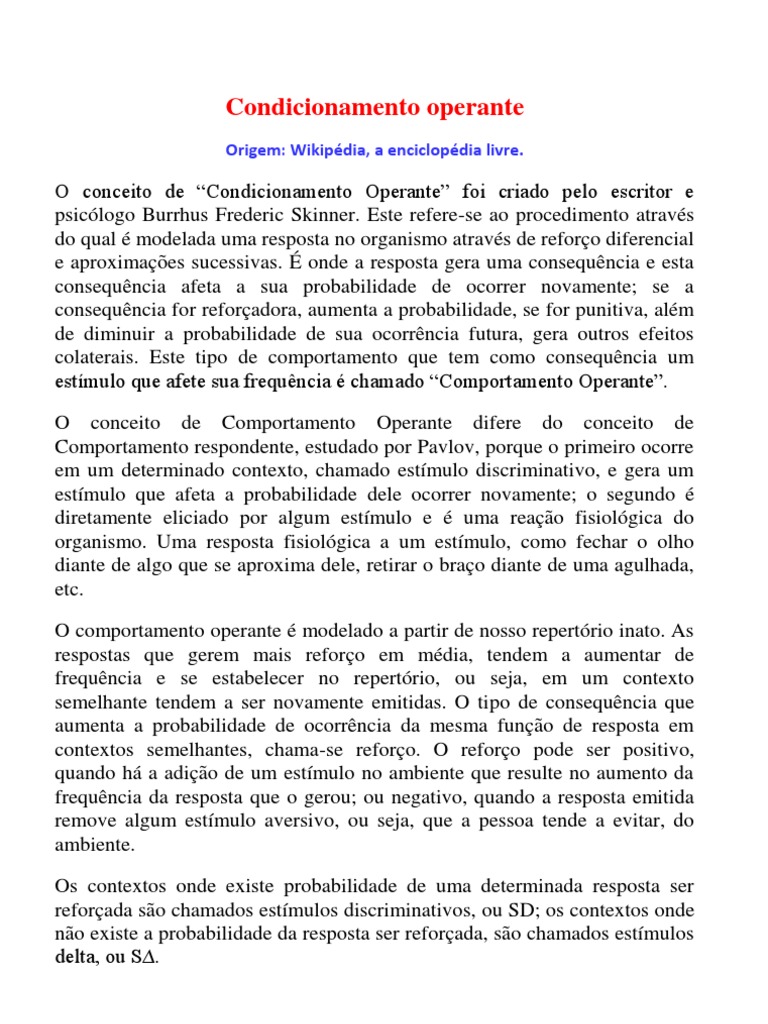 Condicionamento Operante Conceitos Psicologicos Psicologia E