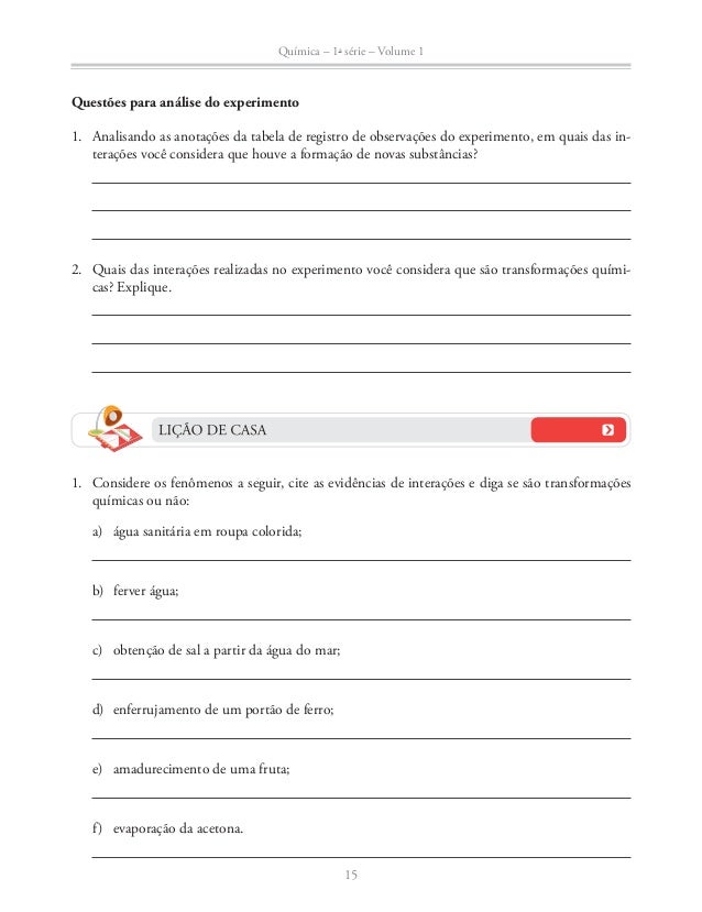 Caderno Do Aluno Quimica 1 Ano Vol 1 2014 2017
