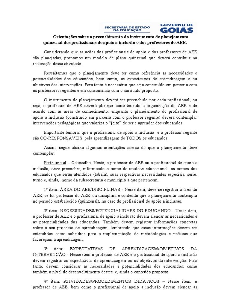 Orientacoes Para Planejamento Quinzenal Apoio E Aee Planejamento