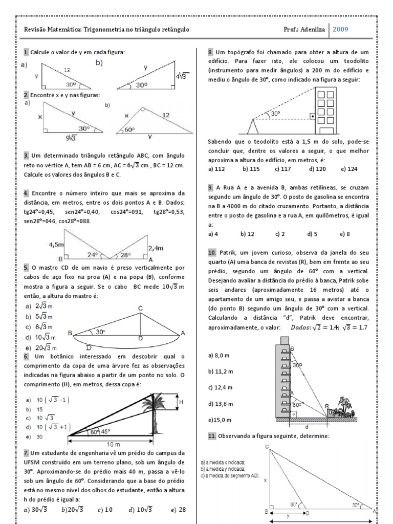 Isso é o que você está procurando Exemplos De Razões Trigonométricas No Triângulo Retângulo.