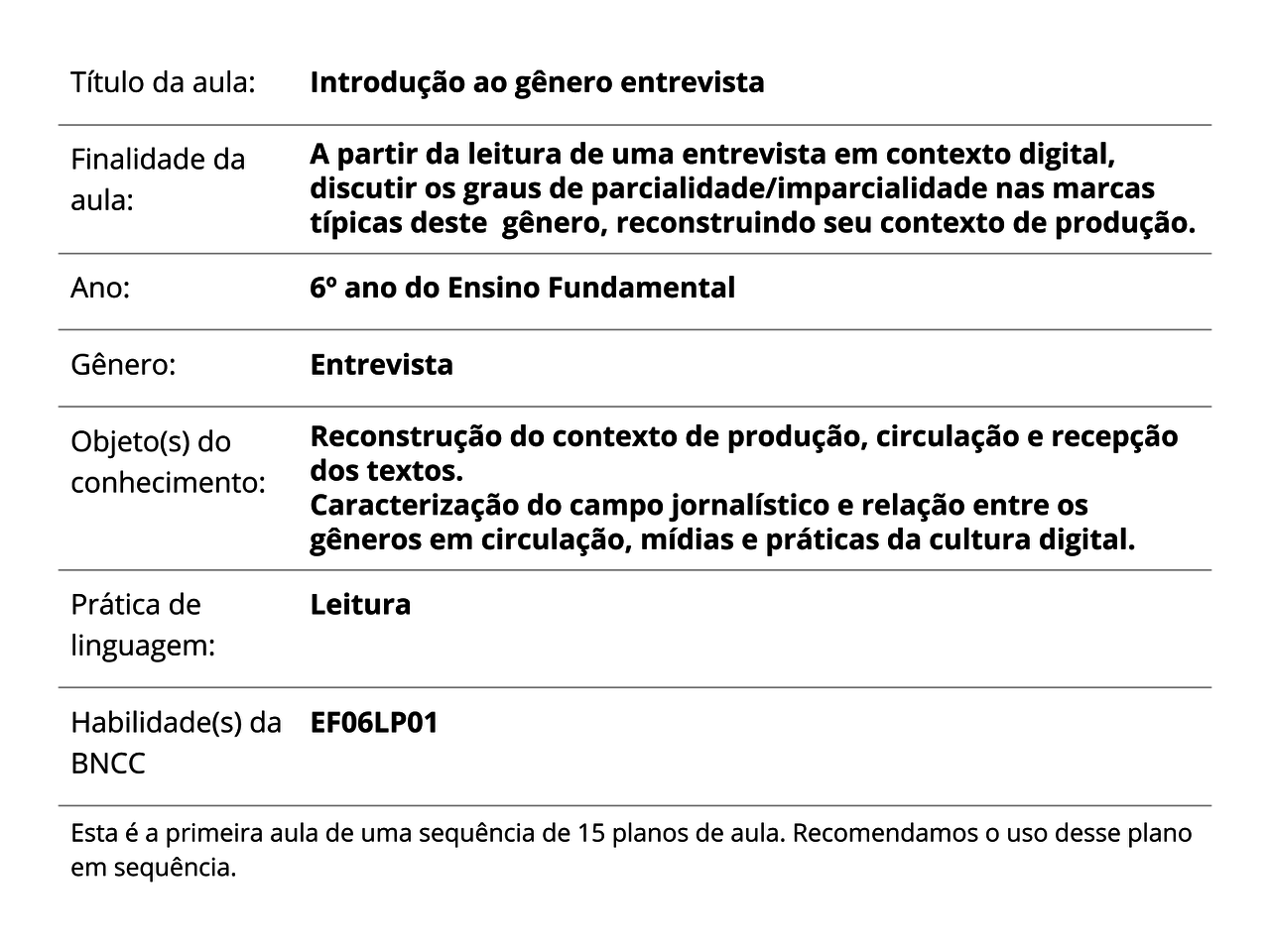 Plano De Aula 6º Ano Lingua Portuguesa Introducao Ao Genero