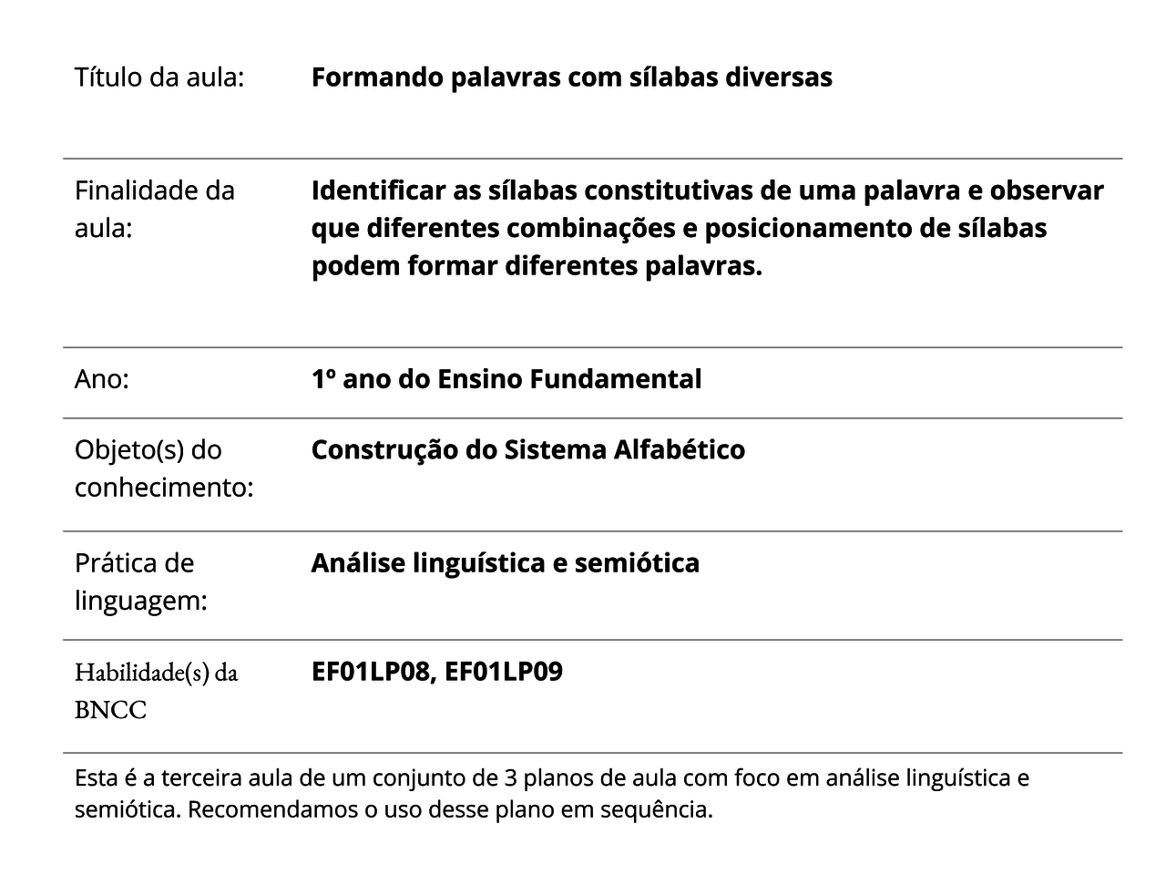 Plano De Aula 1º Ano Lingua Portuguesa Formando Palavras Com