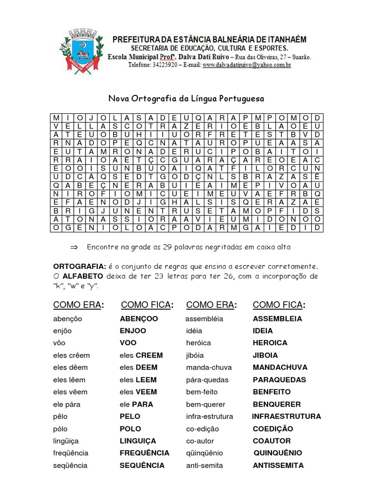 Caca Palavras Nova Ortografia Codificacoes Comunicacao Escrita