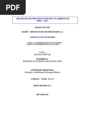 Modelo De Ppra Light Servicos De Eletricidade S A Se Palmares