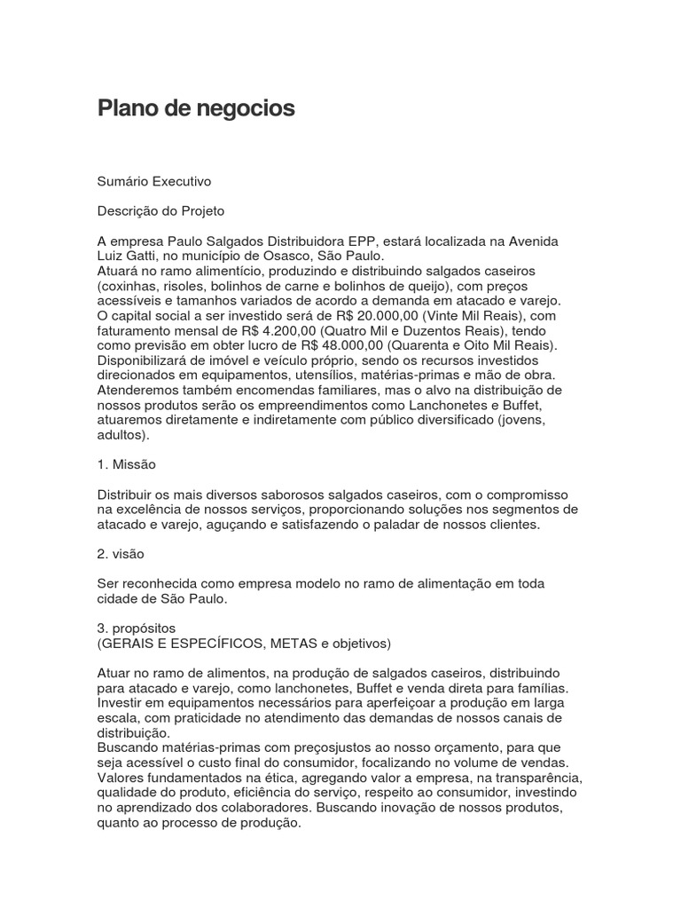 Pdf Exemplo De Plano De Negocios Completo New Business Cafe