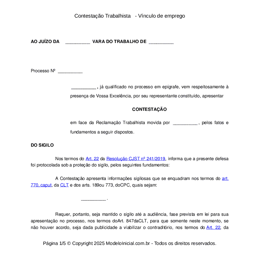 Modelo Contestacao Trabalhista Ausencia De Vinculo Empregaticio