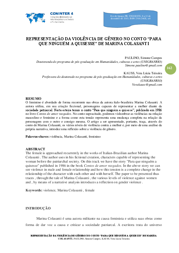 Pdf Representacao Da Violencia De Genero No Conto Para Que