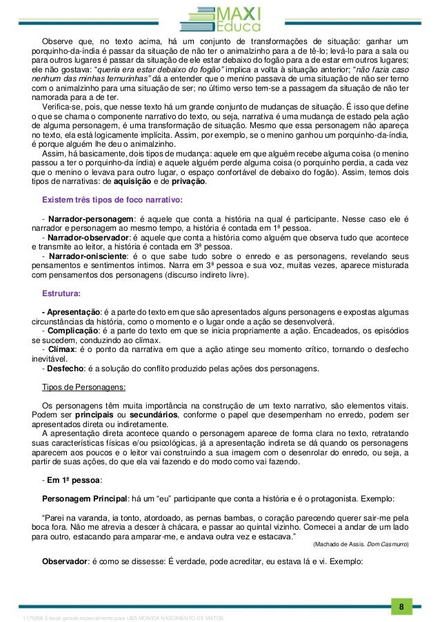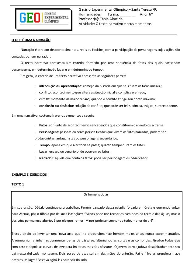 Elementos Da Narrativa 6º Ano